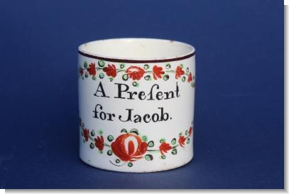 A great late 18th century creamware child's mug. Probably Yorkshire, Leeds area.