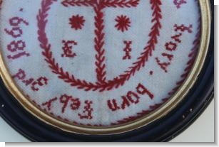 148 years ago today a little girl, Ida Sophia Ivory was born to Henry & Eliza Ivory. He, a Machinist from Weston in Hereford-shire living at 79 The High Street. The event commemorated by this rare birth sampler, possibly by her mother. Like many young women she went into service as a housekeeper, first for her Uncle before becoming a School Governess. |