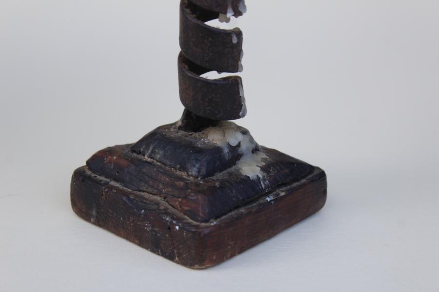 RARE SQUARE BASE IRON TWIST CANDLESTICK.