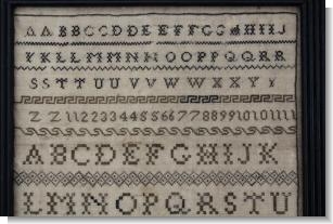 A very rare and interesting sampler worked by an English girl in School in France.