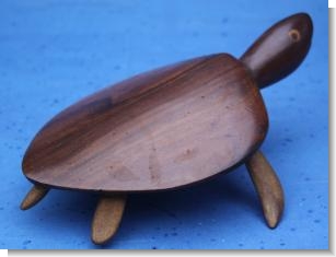 Very Rare large Pitcairn Island Carved Turtle By Christy Warren. Carved in highly sought-after miro wood of a turtle typical of the Pitcairn Island region.
