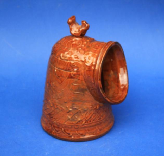 A wonderful interpretation of a traditional piece of country pottery. Worked in red clay with piped decoration and a traditional chicken on top.