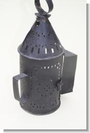 Mid 19th century French sheet iron / tin lantern. Large single window with pierced back and sides.
