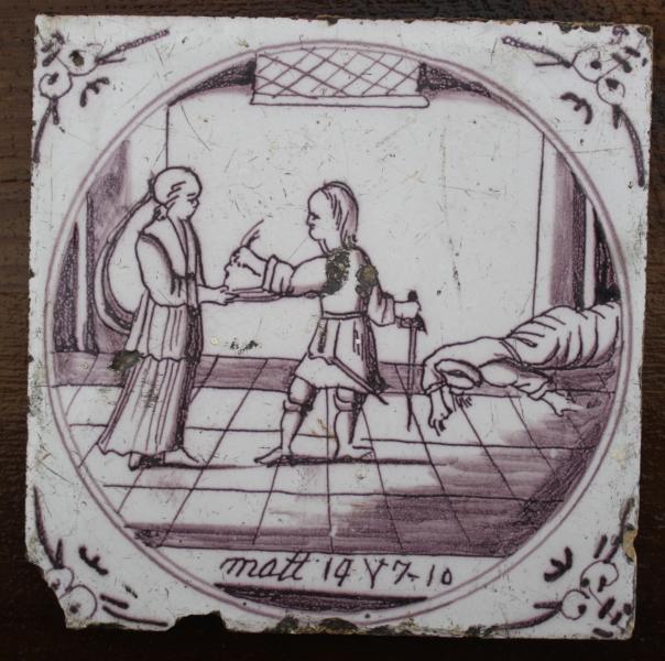 On this tile we have the popular subject of the Beheading of john The Baptist
