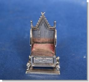 A rare and wonderful commemorative ! Pincushion, modeled as the CORONATION CHAIR.