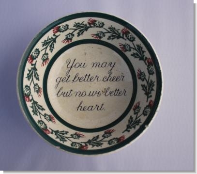 Scottish Motto spongeware bowl. Transfer printed verse with deep sponge border.