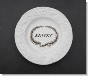 Mid 19th Century Staffordshire Childs plate with transfer printed name EDWIN.