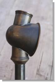 This wonderful A Barrett & Sons Patent No 4 reading lamp from the late 19th century (the top an be turned for straight or dipped light) has on the bottom an advert " Reading Lamp candles Should Always be used 5/6 per box of 3LB..