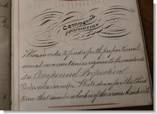 A wonderful school math's book signed to the front Thomas Haigh's 1871 with fine calligraphy swan titles, and pages of written work. many giving an insight to 19th century life...