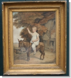 Large early 19th Century water colour of a young boy on the back of a donkey.