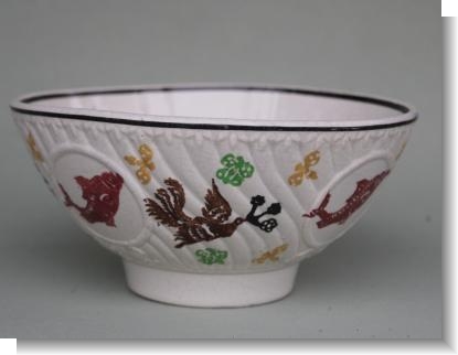 Decorative earthenware pottery produced in England, Scotland Ireland, and Europe oftern associated with folk art. Decorated in ciolourful patterns achived primarily through the simple yet engaging sponge-printing technique. 1820-1940.