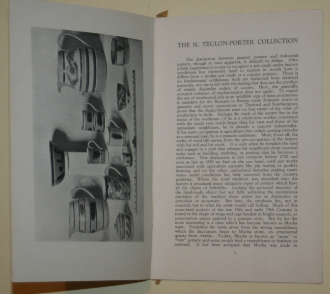 A rare small catalogue describing this important early collection of mocha ware. Produced by the City of Stoke-on-trent museum .
