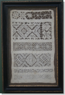 17th CENTURY WHITEWORK BAND SAMPLER