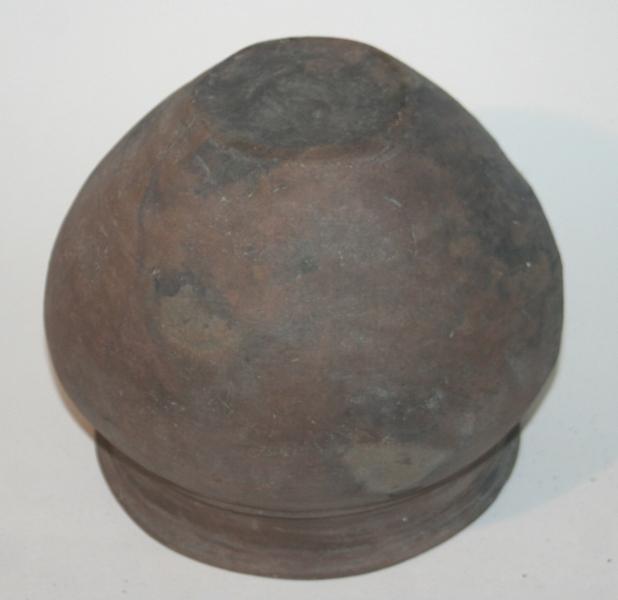 A good classic Upchurch pot of the Slayhill / Milfordhope type. Globular shaped vessel with inverted rim and shallow cordon below the neck. AD.90-120. Understood to have been found in Chatham New Road in the early 1970s