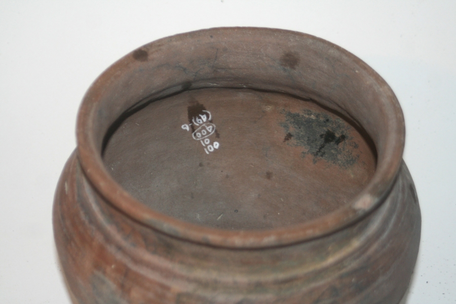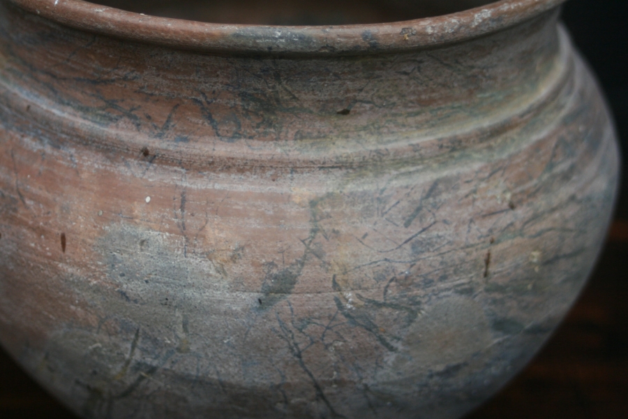 From about AD 50 through to the middle ages Upchurch appears to be an important pottery site generally overlooked. It was the early 'Staffordshire' of the period producing a wide range of pots from fine Samian copies to basic cooking ware. So this pot with its distinctive veining caused decayed organic matter (roots etc). in the clay was an intentional feature of this pot.