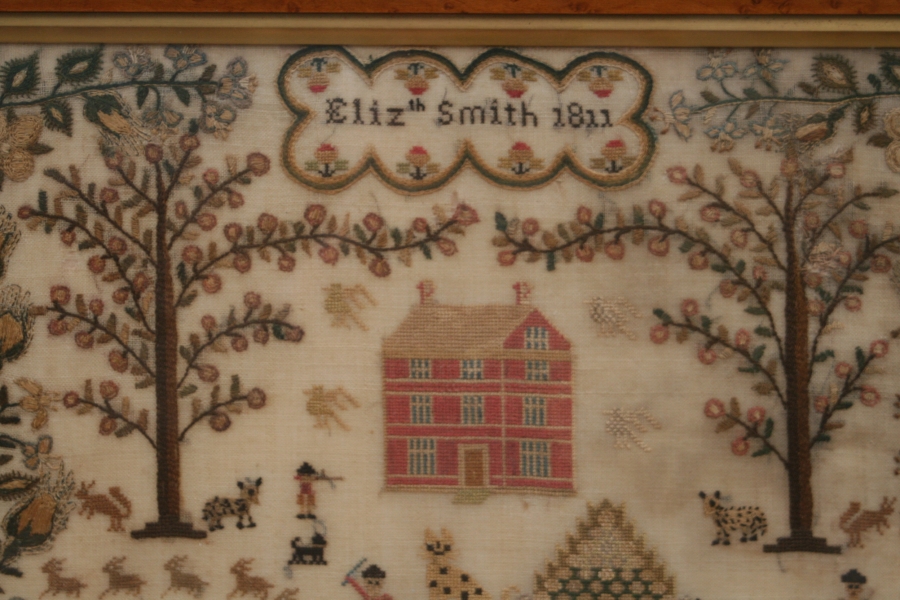 Some time ago we say another sampler of the same pattern (very damaged and unfortunately did not record the name.) so probably the result of a very small school or tutor.