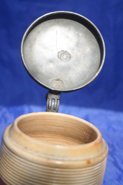 It retains its original pewter lid with ball shape thumb piece . The top possibly having owners initials AW lightly engraved to it the underside having a dated 1736 Touch mark of the maker.