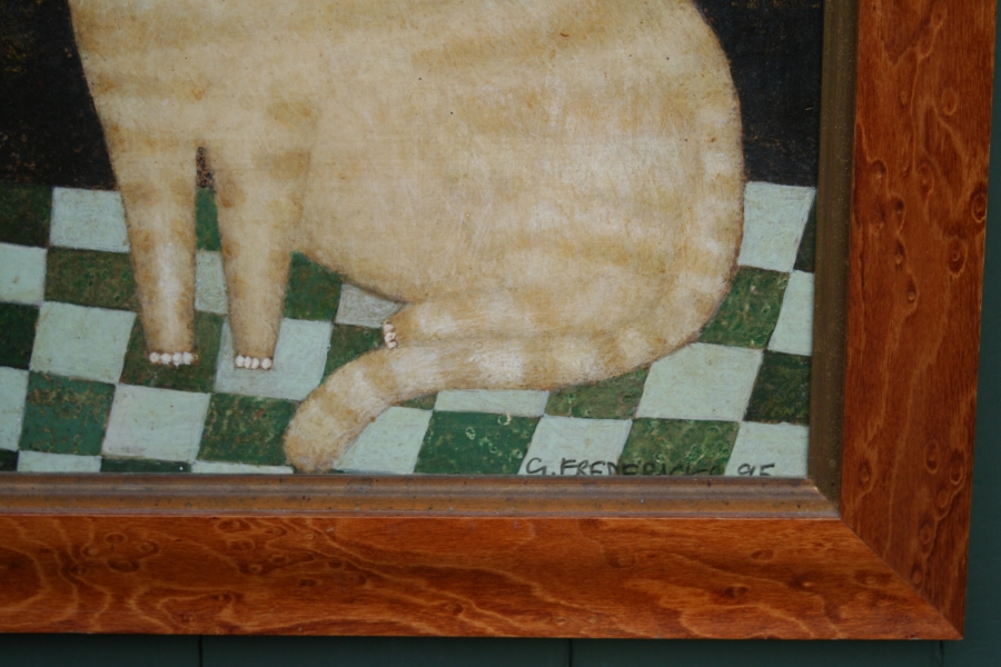 Born in 1929, George Fredericks is a painter of the naïve school. His early paintings were exhibited and sold at the Redfern Gallery in Cork Street, London. He exhibited in Germany, Holland, Zurich, London and the USA. His work is held in many private collections including those of Jack Nicolson, Michelle Pfiefer, Barbara Rockefeller and Nanette Newman.