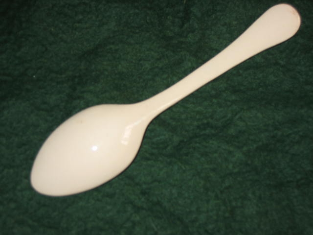 | RARE CREAMWARE SPOON, GILT FEATHER EDGE. |