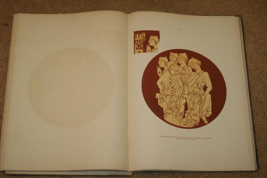 A very rare large format book. TILES FROM CHERTSEY; Tiles from Chertsey Abbey Surry, formed the pavement . From drawings by Mr Manwaring Shurlock. 41 coloured plates of medallions representing the chief incidents relating to the Romance Poems "Richard Coeur de Lion" and Sir Tristrem are drawn full size.
