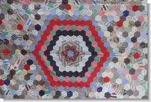 A good mid 19th century patchwork quilt, retaining original paper patterns with great calligraphy