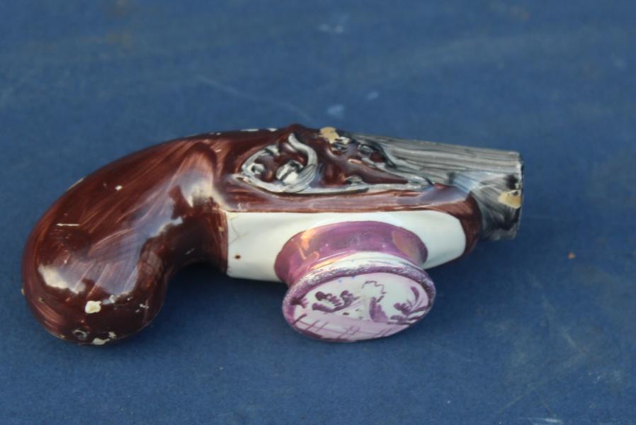 | PEARLWARE SNUFF BOX in the form of a Pistol |