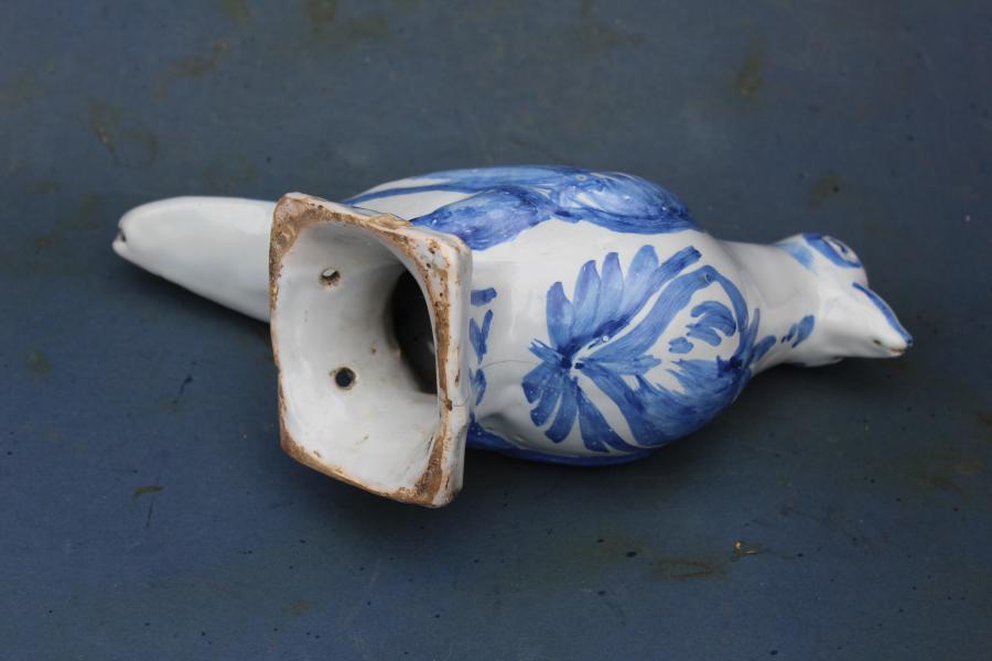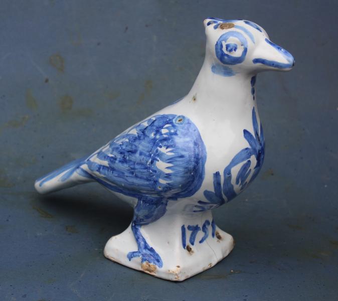 Medieval roof finials as well as Victorian examples are well documented but we can find little evidence of them between these periods. So we are particularly pleased to be able to offer this mid 18th century tin glaze example, possibly Dutch or low countries and dated 1759.