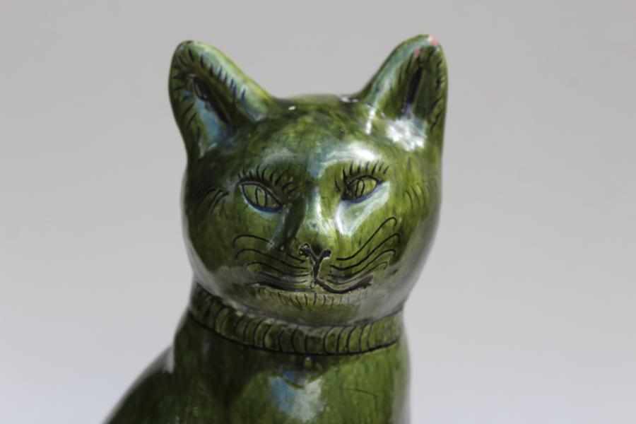 LARGE SWANSEA EWENNY POTTERY CAT, 1908