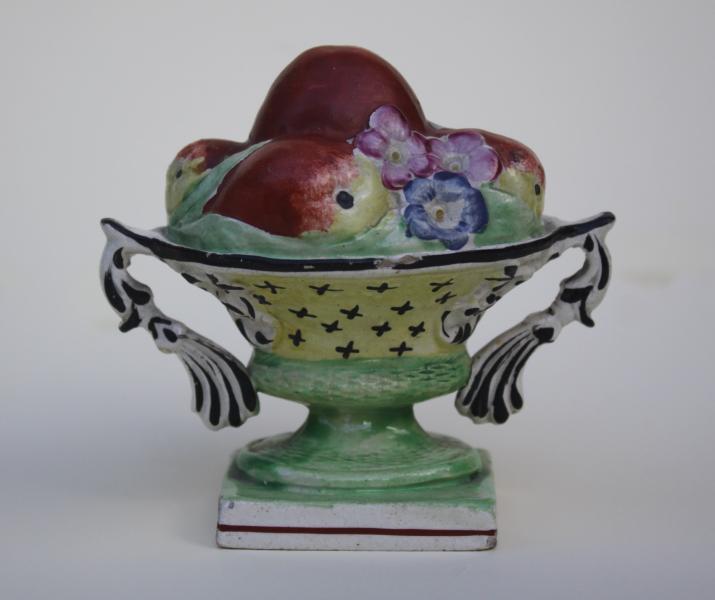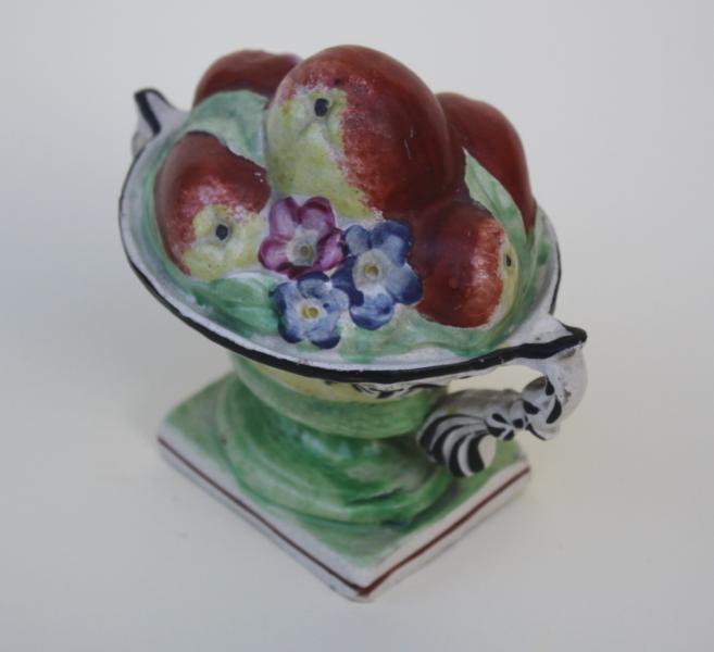 A very rare and unusual early 19th century pearlware model of a basket of fruit.