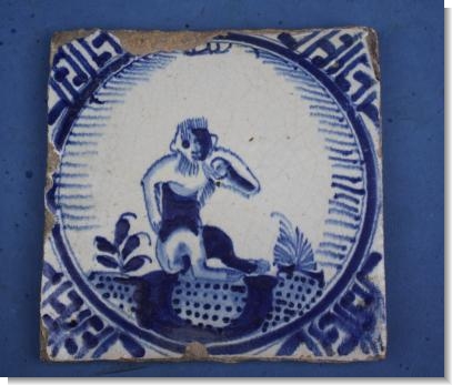 | Good 17th Century DUTCH DELFT TILE of a MONKEY, c.1640 |