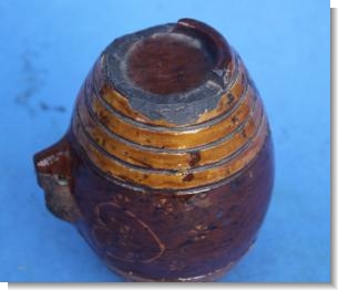 A wonderful late 18th century slipware barrel, with incised decoration to both sides in the form of hearts.