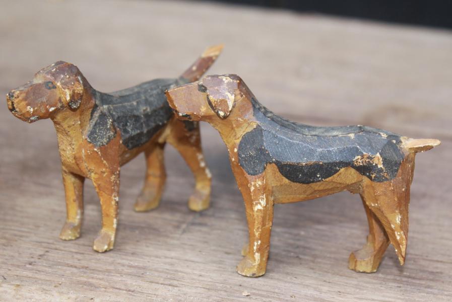 A group of carvings by Frank Whittington (1876-1973)an artist and wood-carver who set up a toy making business in the New Forest at the end of the First World War. The Forest Toys factory became renowned for its beautifully observed painted wooden toys. Whittington was particularly inspired by the animals, people and vehicles surrounding him in the New Forest. He also regularly visited London Zoo and the Natural History Museum so as to produce accurate scale models of exotic animals for his Noah’s Arks and Zoo sets.