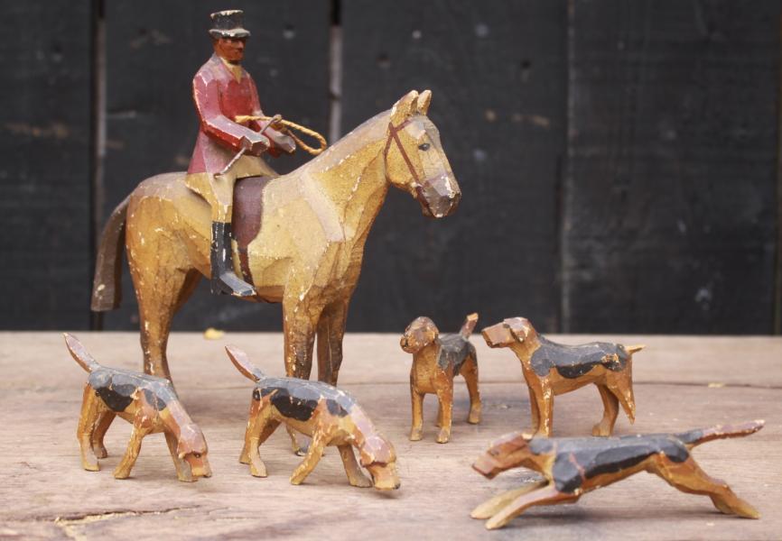 | HORSE & RIDER with DOGS, FOREST TOYs by Frank Whittington |