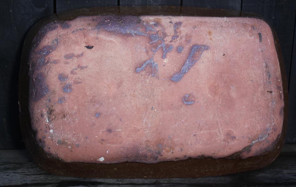 I love pots that make you think, this large, probably Yorkshire baking dish measures 65.5 cm across and weighs in at 21 Lbs 9.5 Kg add the contents of the pie the total would be possibly 15 kg or more, Now you would not want to pick a fight with the cook ! or server.