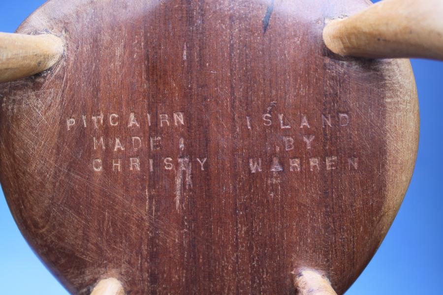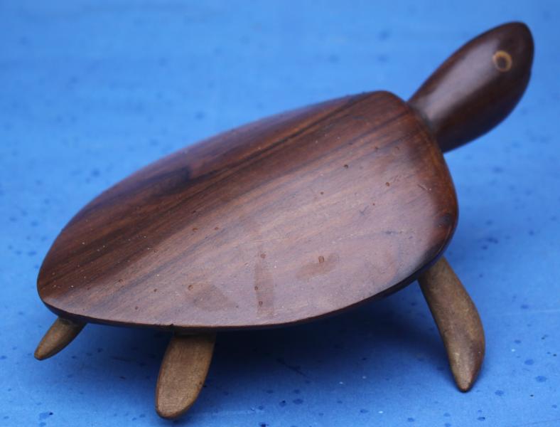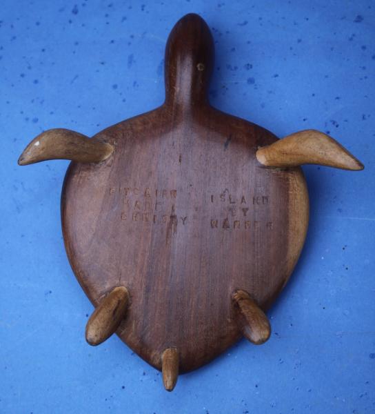 Very Rare large Pitcairn Island Carved Turtle By Christy Warren. Carved in highly sought-after miro wood of a turtle typical of the Pitcairn Island region.