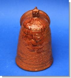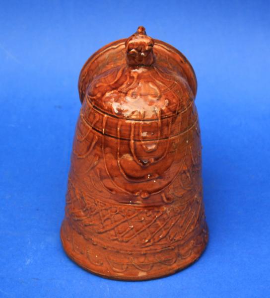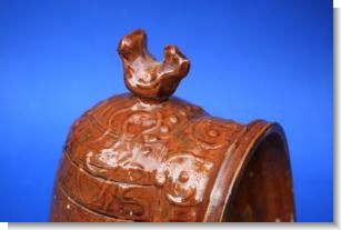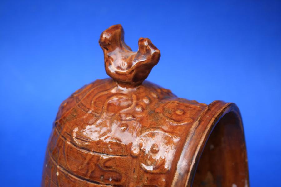 A wonderful interpretation of a traditional piece of country pottery. Worked in red clay with piped decoration and a traditional chicken on top.
