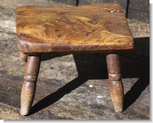 What makes a perfect stool, character ! this one stands straight but look at those legs, three short and one long, with a great piece of wood on top.