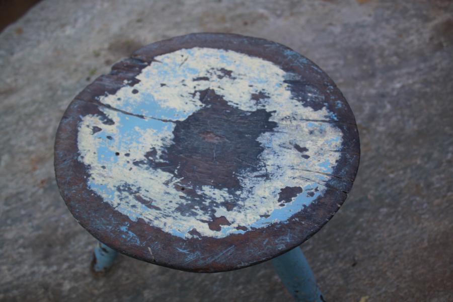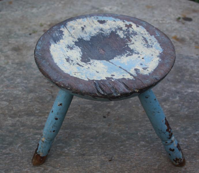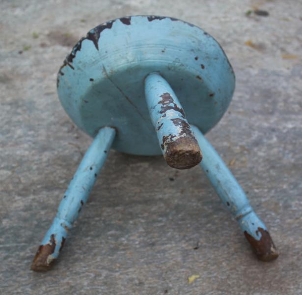 | BLUE PAINTED MILKING STOOL |