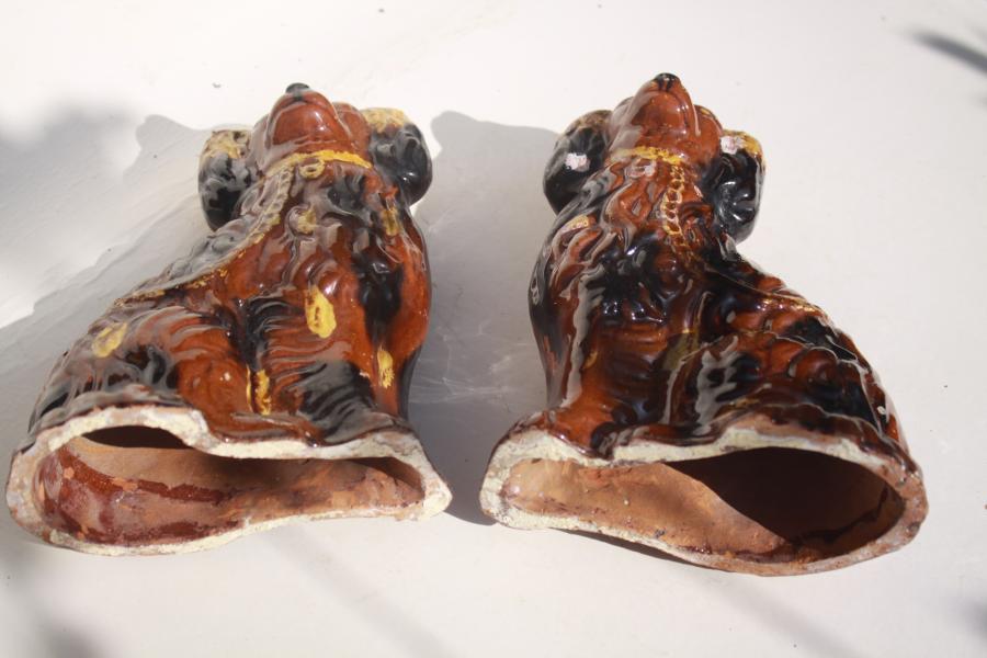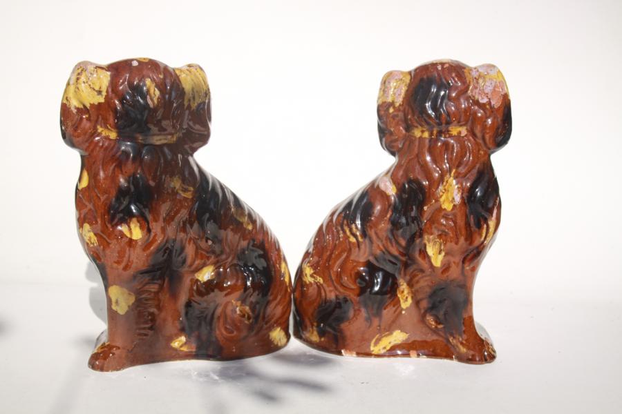 A very rare pair of mid 19th century "Staffordshire" dogs, decorated in slipware .