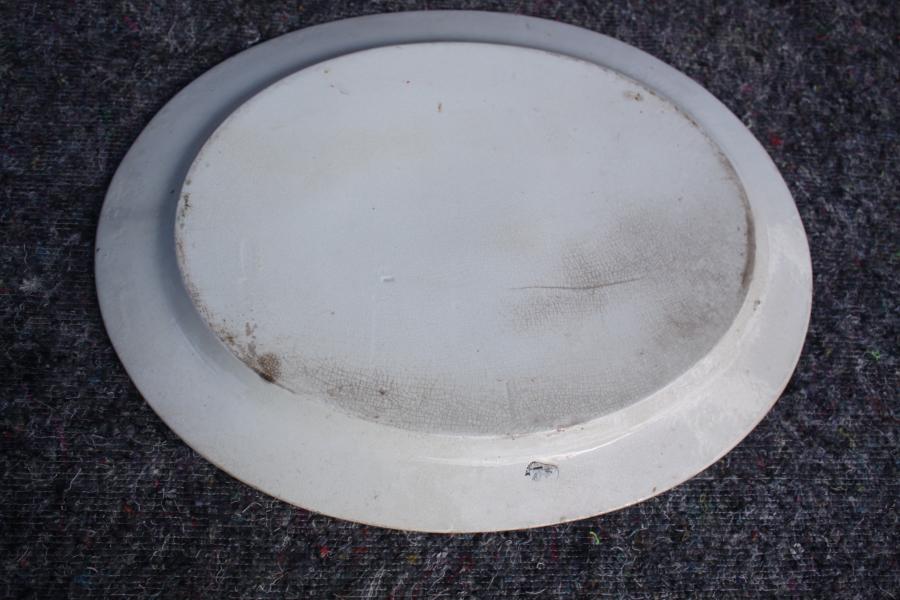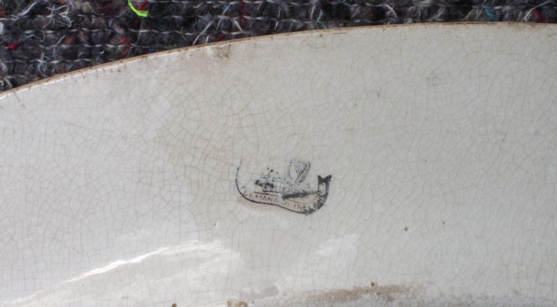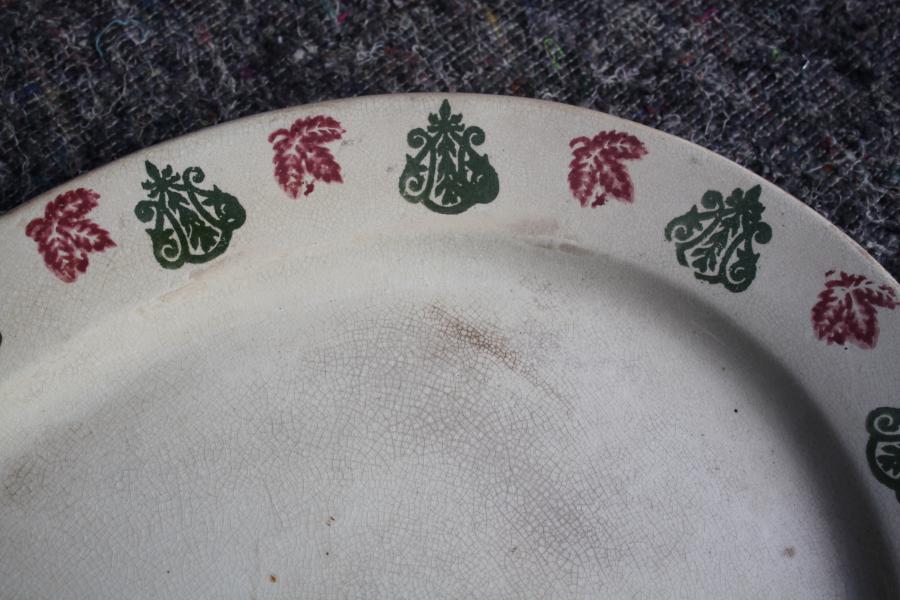 We sometimes forget that the Belleek porcelain factory original stated making usable domestic sponge ware. Rare to find marked examples like this 18 inch platter.