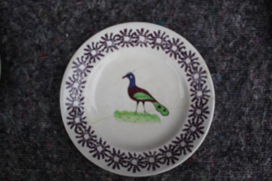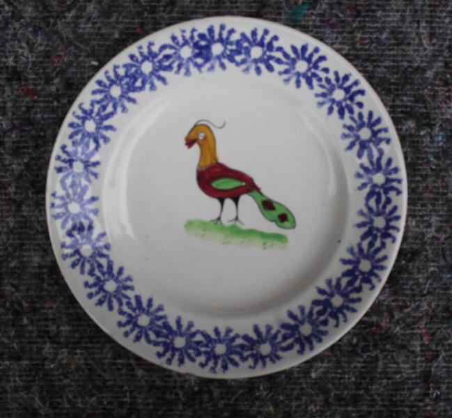 A very rare and interesting pair of naively decorated bird plates with sponge decorated border.