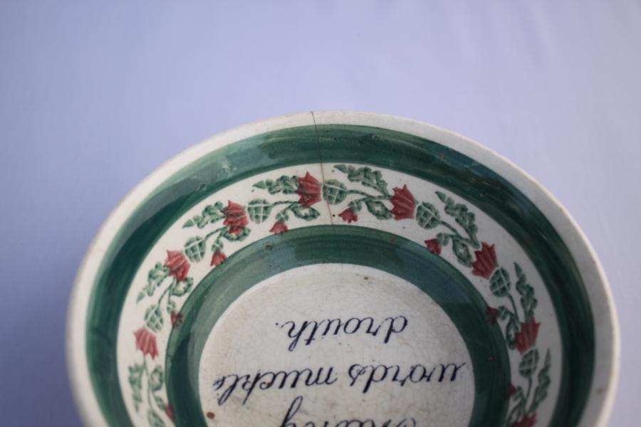 Scottish Motto spongeware bowl. Transfer printed verse with deep sponge border.