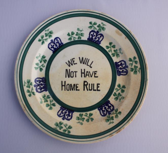 very RARE Scottish Spongeware Plate made for the Irish Market, made to support those against HOME RULE.