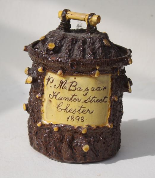 An interesting piece of fund raising pottery, inscribed P.M.Bazaar, Hunter Street Chester 1898.