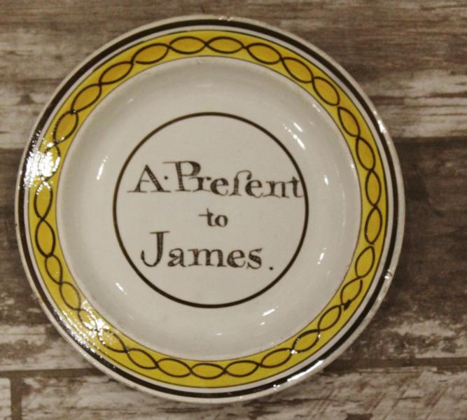 A stunning very early 19th century child's plate inscribed "A present to James".