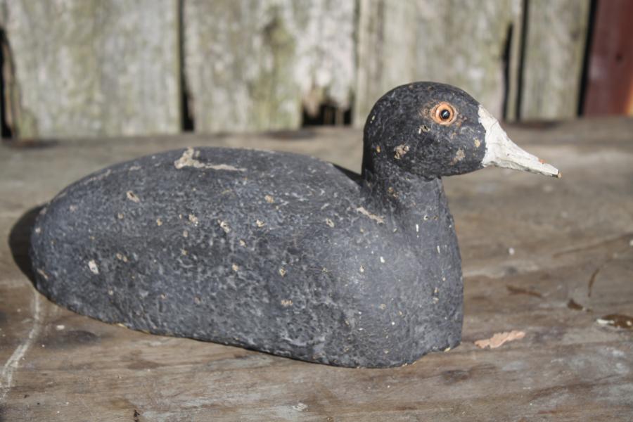 A rare early 20th century carved and painted cork decoy of a coot. A member of the rail family, Rallidae they are generally not eaten but used as a confidence bird to attract Mallard and the such.