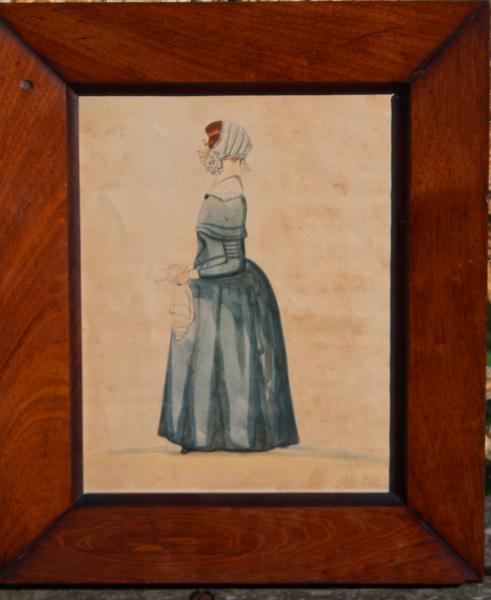 Inscribed on the back Mary Rose Johnson, Painted by M. Doland 1810. Now we may know nothing about these people. (hopefully research may turn up some information) one can infer a story.... Mary is of an age , that she would either be a young bride or had a suiter possibly away in the Army fighting Bonaparte in Spain and France, she has been hoping for news, the letter, the hankie for tears but he has not died , she is in blue not black. So lets hope just injured and on his return.