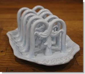 Over the years we have had a number of these solid body colour toast racks. Have seen them in this blue , a green and buff drab colour so it was a surprise to turn this one over and impressed mark COPELAND & GARRETT. c.1833-47.