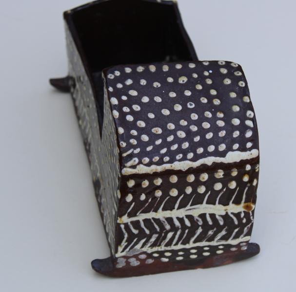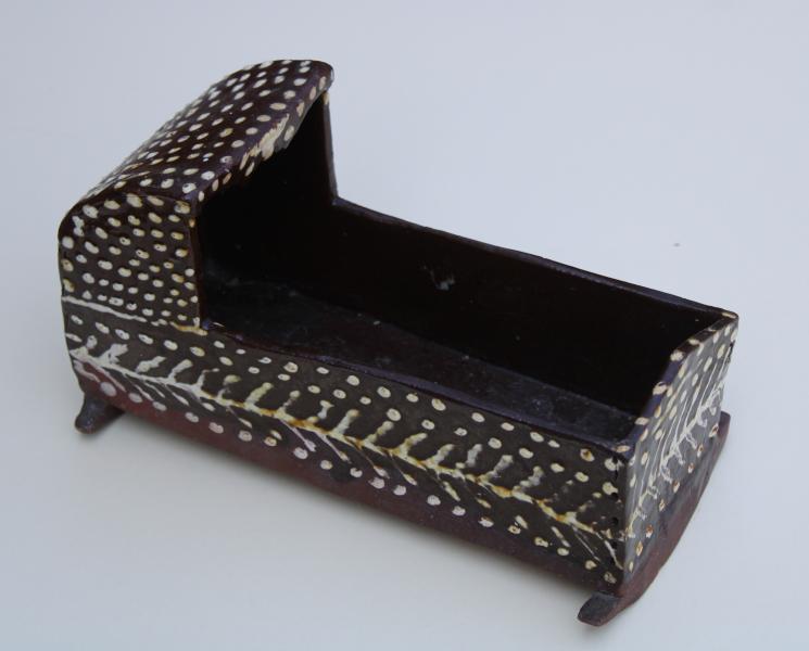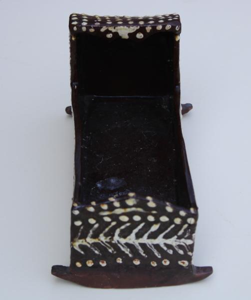 Mid to late 19th century slip decorated pottery cradle attributed to Wetheriggs pottery.