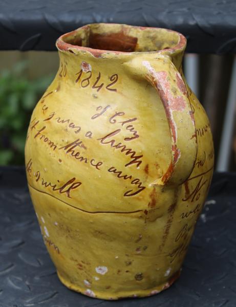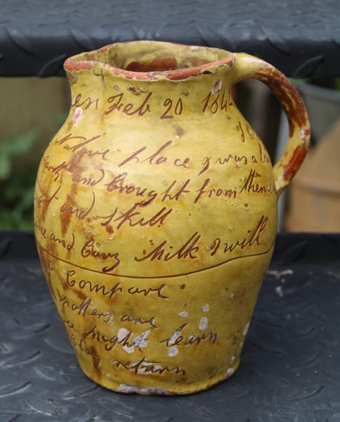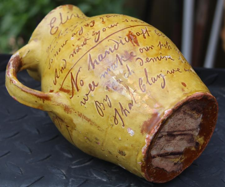 An interesting Mid 19th century West Country slipware jug , with the most wonderful verse.....